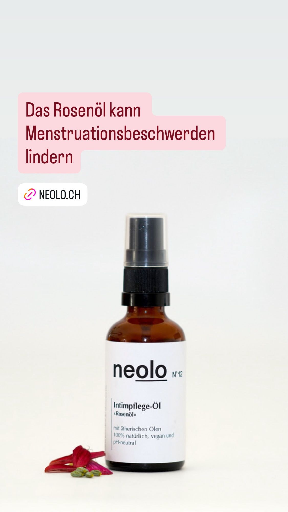 NEOLO Rosenöl kann eine sanfte, natürliche Ergänzung zur Linderung von Menstruationsbeschwerden sein – vor allem durch: